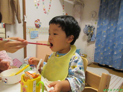 あ~ん、ゆうごはんは食べさせてもらってます♪