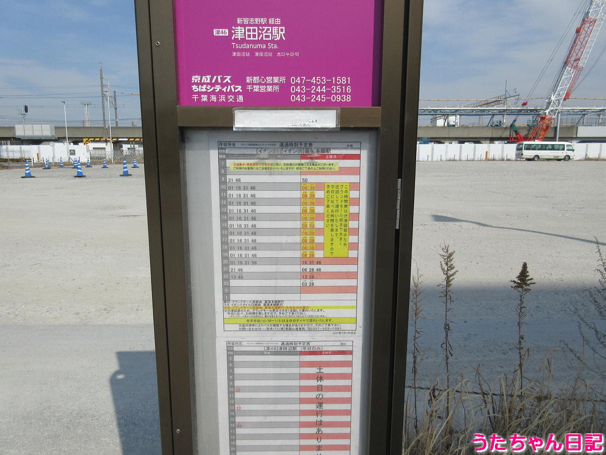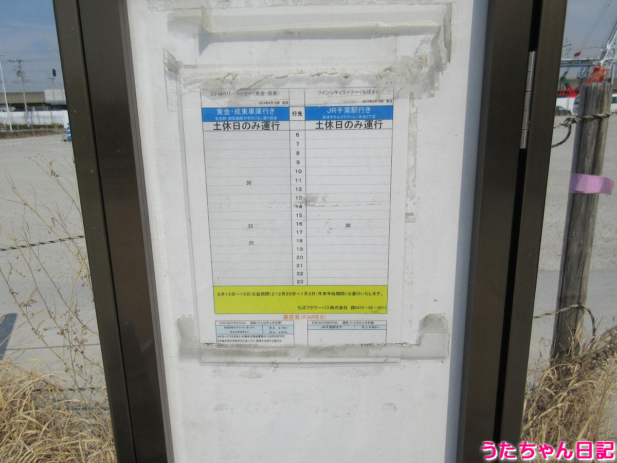 JR稲毛駅行きのバス時刻表、平日は1時間に1本なので、店員さんの通勤用か?