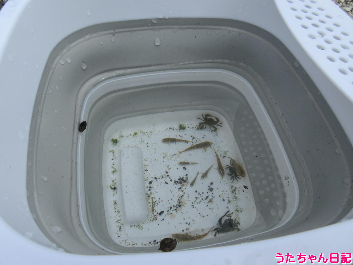 観察出来たのは、小魚、イワガニ、ヤドカリ