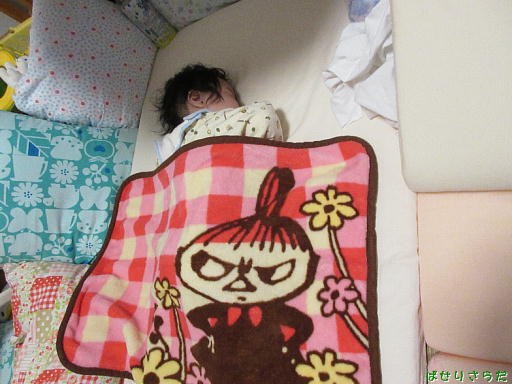 おねんね中、ミーのブランケットがかわいいです♪