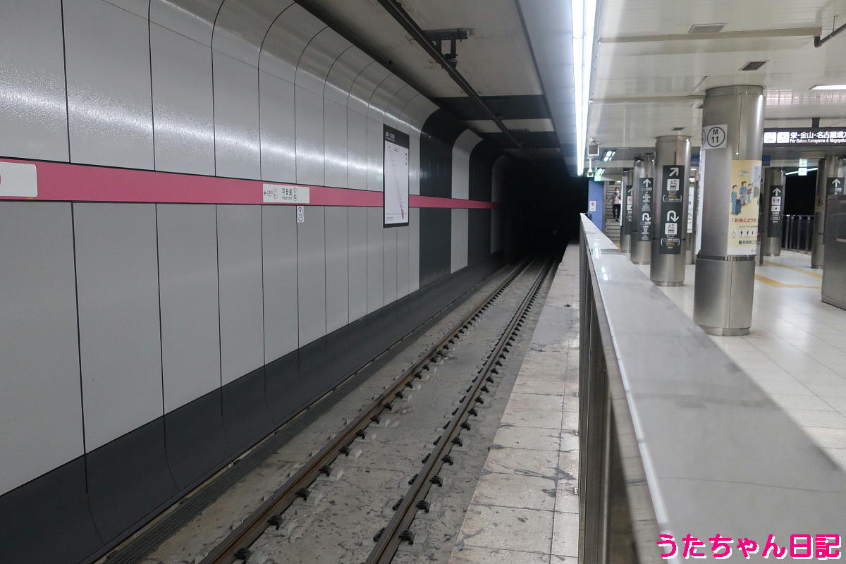 久屋大通駅のホームとスキマの少ない車両ドアのようす