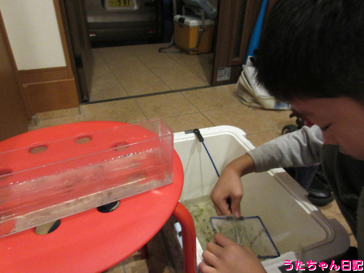 生き物分類中(おうち)すぐエサにするもの、飼ってからエサにするものに仕分けています
