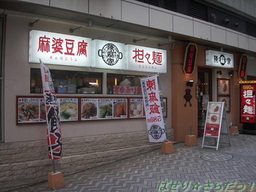 2009-01-24 陳麻家千葉C・one店♪(千葉市中央区富士見) 11◆お散歩日記 11◆お散歩日記-01◇千葉県 11◆お散歩日記-01◇千葉県-01■千葉市 13◆目的地別 13◆目的地別-11◇お食事日記 <お食事日:2009/1/20> 気分転換に街まで出てお食事♪さんざん迷ったあげくほとんどの店がランチタイム終了の2時になってしまったのでJR・京成高架下のショッピングセンターへ♪さいたま新都心の系列店とは、内外装とも似ても似つかぬ感じ。 お店の外観 ショッピングセンターの外側から。多くの客はショッピングセンター内側から入るのでお店としては裏側。角地の目立つ位置にある。 担々麺と〆めし 看板にもでっかく出ている担々麺を注文。〆めしも追加で。こくのあるスープが特徴的。味の濃さも丁度良く個性的な味覚が活きている。麺の太さも具の量もほどよくて美味しい。 〆めし(ねこまんま?) 追加メニューにも「お行儀が悪い」と書いてある正統的な食べ方。確かにうまいぞ♪お腹もいっぱいだ♪ 店内の様子 意外と質素な作りはシーワンの他の店舗に同調したものだろう。テーブルもあるがカウンターの一人客が多い。